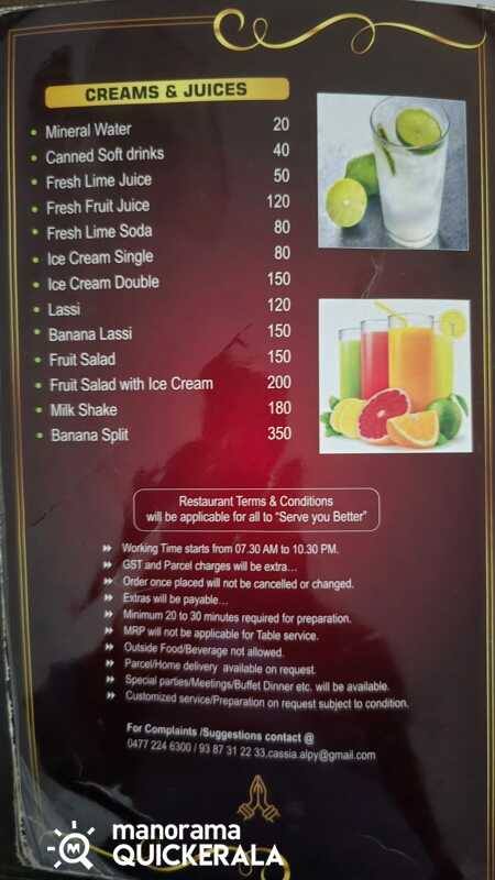 Cassia is a premium restaurant located right in the heart of Alappuzha city and has turned out to be the most sought-after destination for tourists from all over the world. It’s a unit of prominent Pearl spot Hotels & Resorts, operated by Shri. Santhosh George & Shmt. Susan Santhosh George. The hotel includes a fine dining hall designed in an artistic fashion, a well cleaned and hygienic kitchen. The varieties of food served in the restaurant makes this hotel a favorite hang-out spot for lovers of yummy food. The menu includes wide varieties of delicious sea food, Italian cuisines, North Indian dishes and many more to turn you a giant, when it’s eating time.