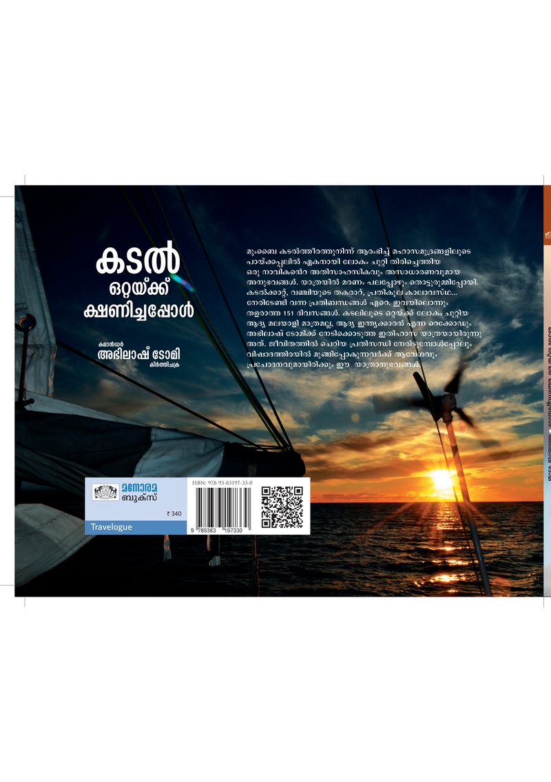 ആദ്യമായി ഒരു മലയാളി ഒറ്റയ്ക്ക് എങ്ങും നിർത്താതെ ഒരു പായ്വഞ്ചിയിൽ ലോകം ചുറ്റുന്ന യാത്രയുടെ അപൂർവാനുഭവങ്ങൾ.
