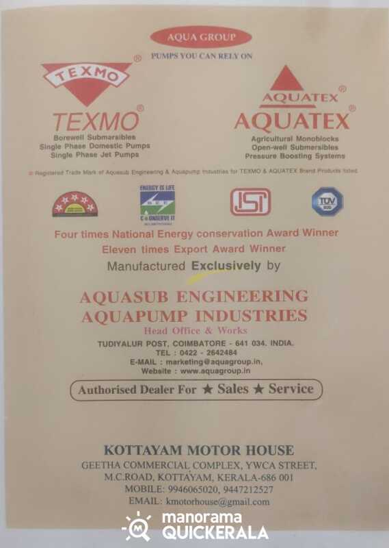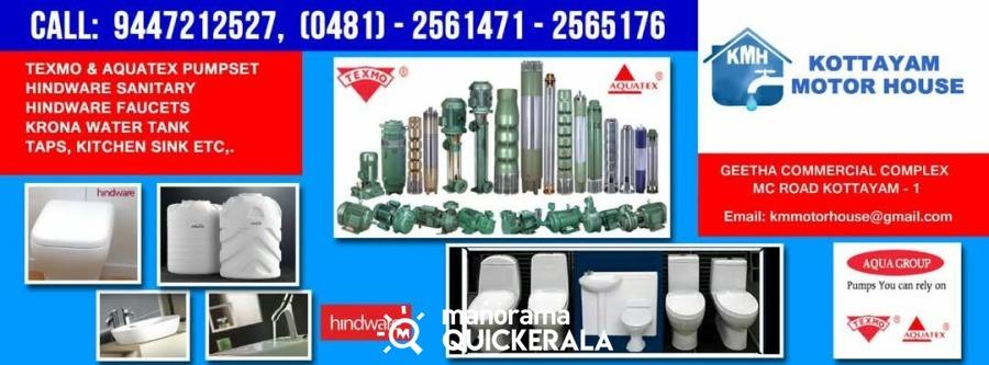 Kottayam Motor House at Kottayam is an authorized dealer of Hindware Products, sanitary wares, pumpsets and other products.