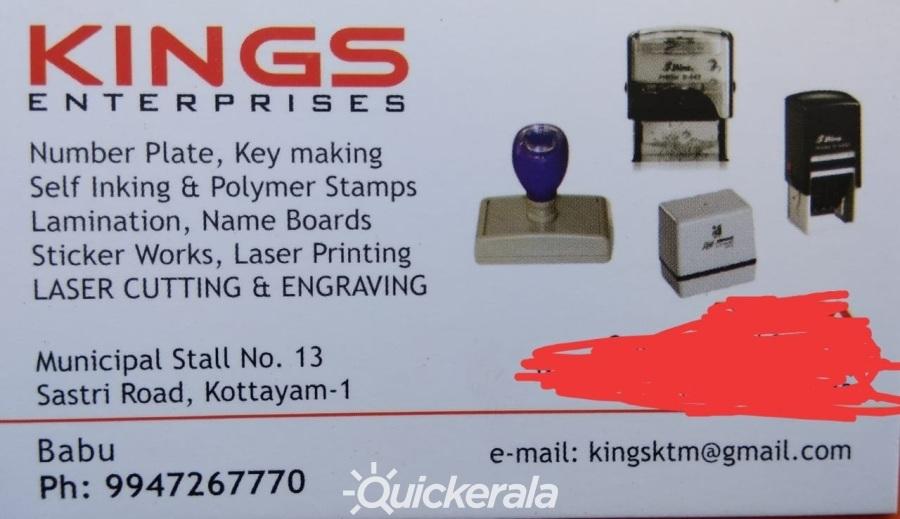 Numberplate, Key Making, Self Inking and Polymer Stamps, Lamination, Name Boards, Sticker Works, Laser Printing, Laser Cutting & Engraving