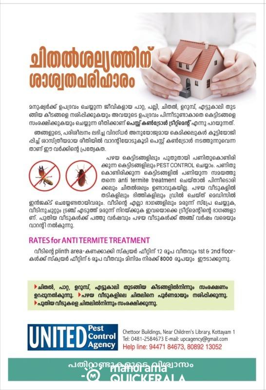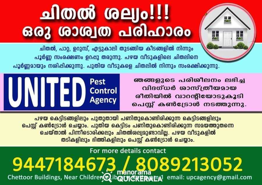 United Pest Control Agency is located at Chettoor Buildings, Near Children’s library, Kottayam since last 25 years.