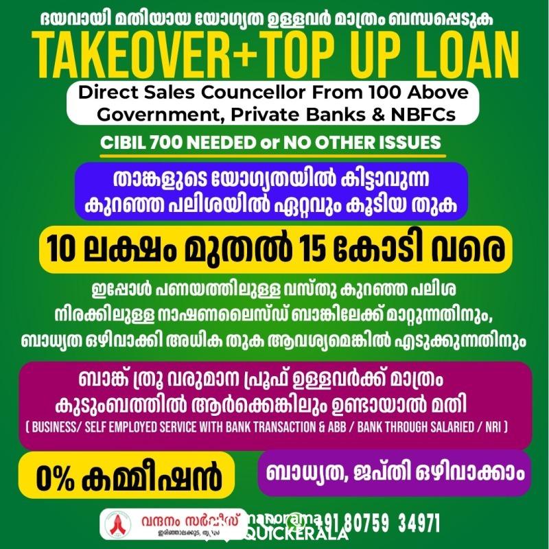 അത്യാവശ്യം യോഗ്യത. ഉള്ള വ്യതികൾക്ക് അവർക്ക് ഏറ്റവുംഅനുയോജ്യമായ ബാങ്ക് ഏത് എന്ന് കണ്ടു എത്തി ഏറ്റവും പലിശ കുറവിലും, പരമാവധി വേഗത്തിലും, complete documentation help ഉം, guidlines ഉം നൽകി ലോൺ എടുത്തു നൽകും