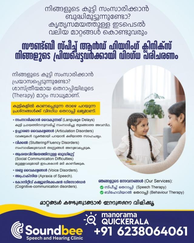 SoundBee Speech & Hearing Clinic is a premier center for audiology and speech rehabilitation in Kazhakkuttam Trivandrum, dedicated to helping you reconnect with the sounds that matter most. Rated highly by patients for our compassionate care and advanced technology, we offer a complete range of diagnostic and rehabilitative services for all ages