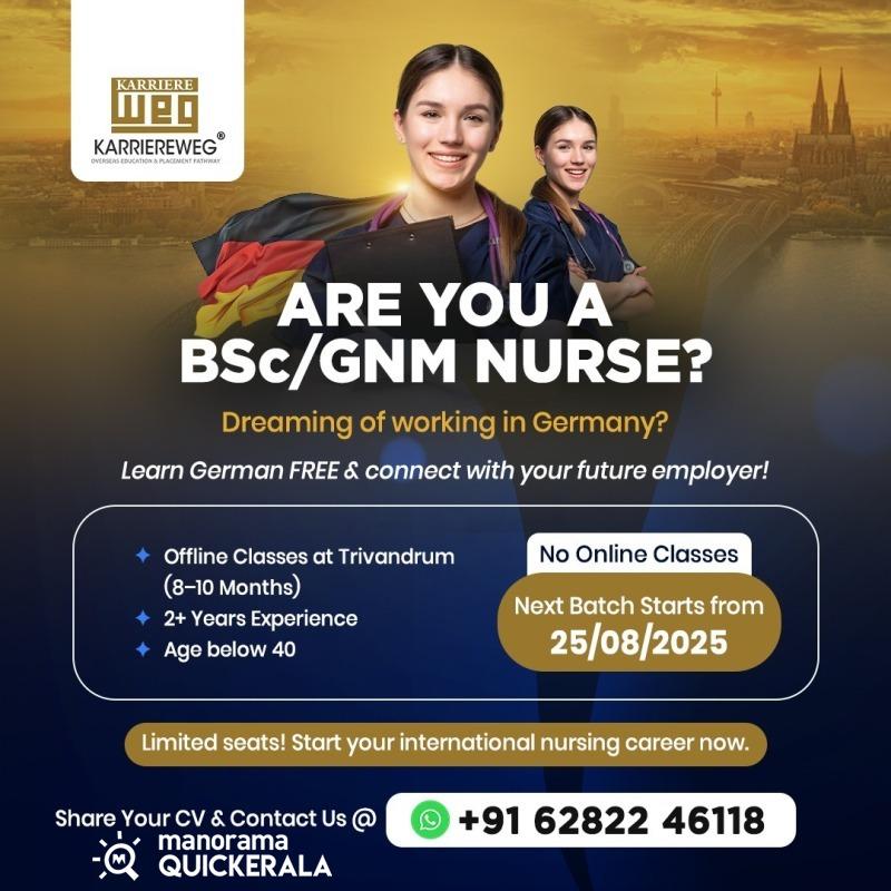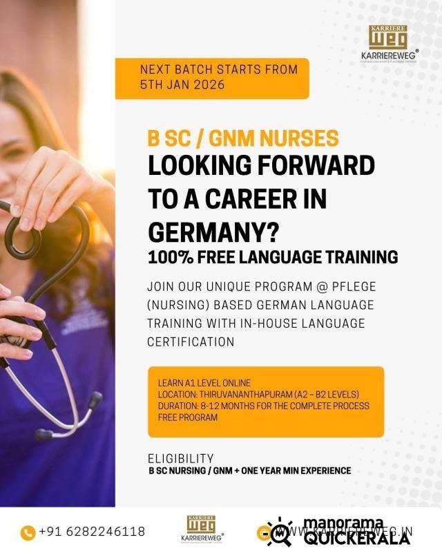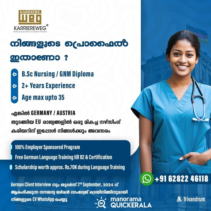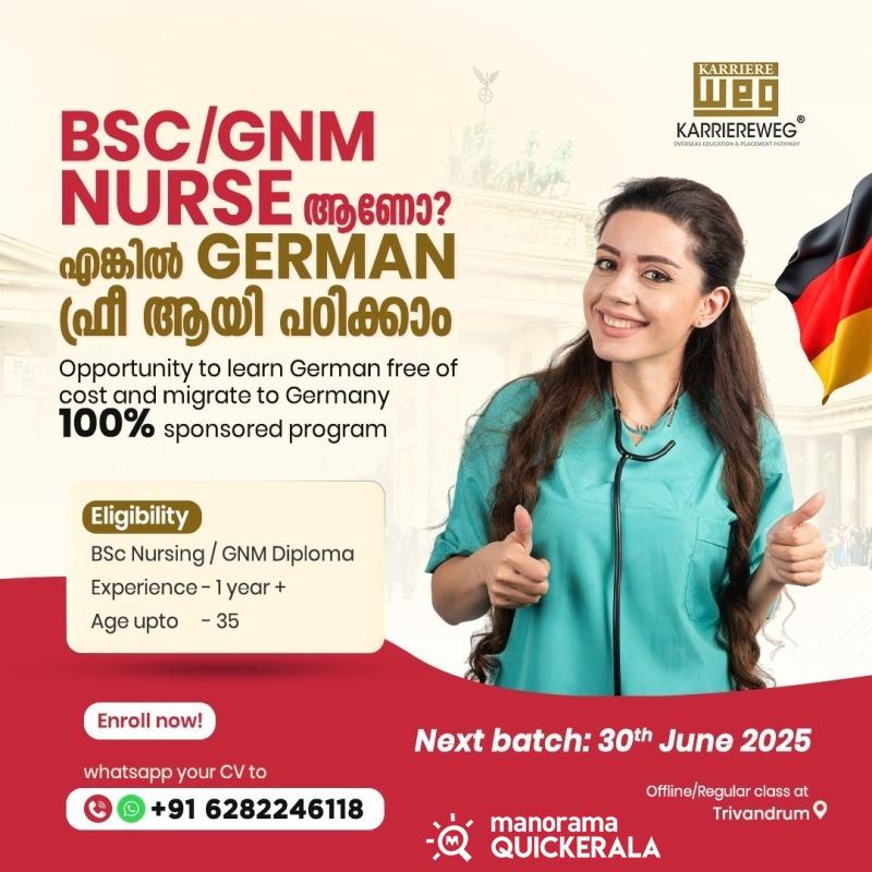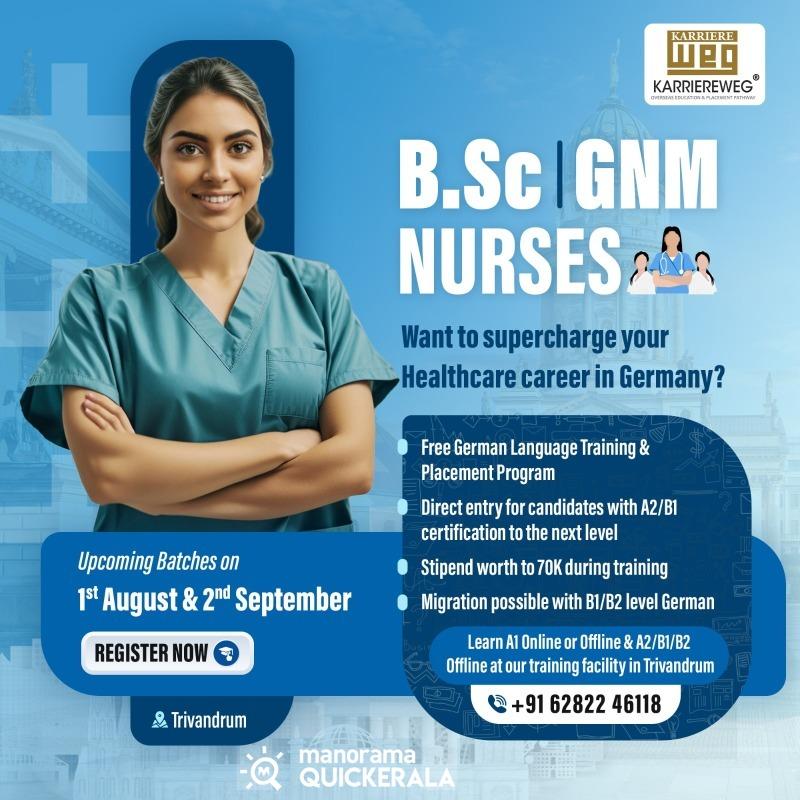 BSc/GNM നഴ്സുമാർക്ക് ജർമനിയിലേയ്ക്ക് ഫ്രീയായി Migrate ചെയ്യാൻ സുവർണാവസരം !!!